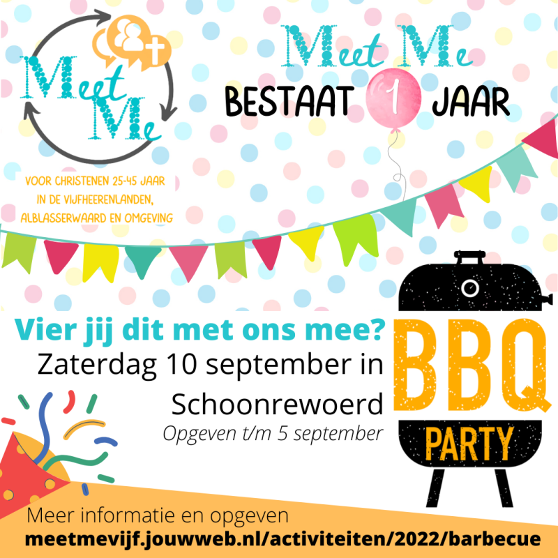 Op zaterdag 10 september 2022 organiseren we weer een barbecue! Meet Me bestaat dan 1 jaar en dat mag gevierd worden!