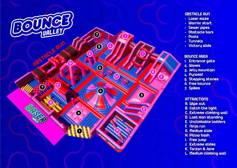 Bounce Valley is het grootste luchtkussenpark van Nederland en ideaal om je een avond te vermaken! Je hebt hier veel activiteiten op één groot luchtkussen: wipe out, glijbanen, lasermaze en een obstacle run. Erg leuk om het samen met leeftijdsgenoten lekker sportief het kind in je naar boven te halen! De zaterdagavonden zijn speciaal voor volwassenen. Doe je mee?
